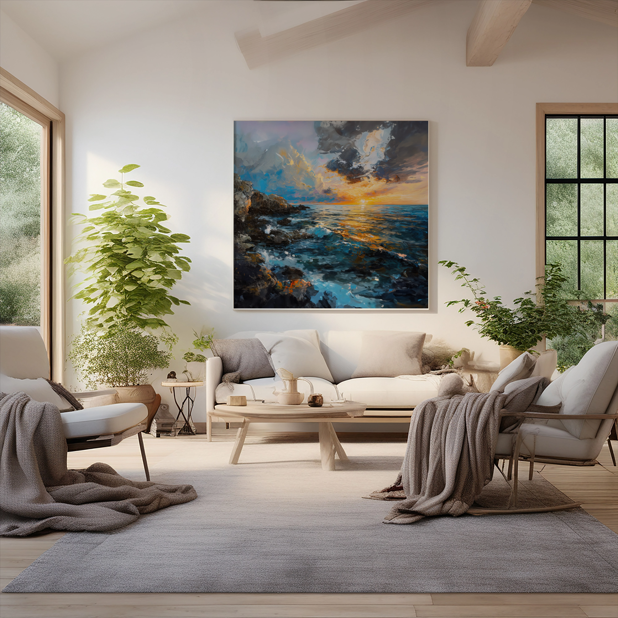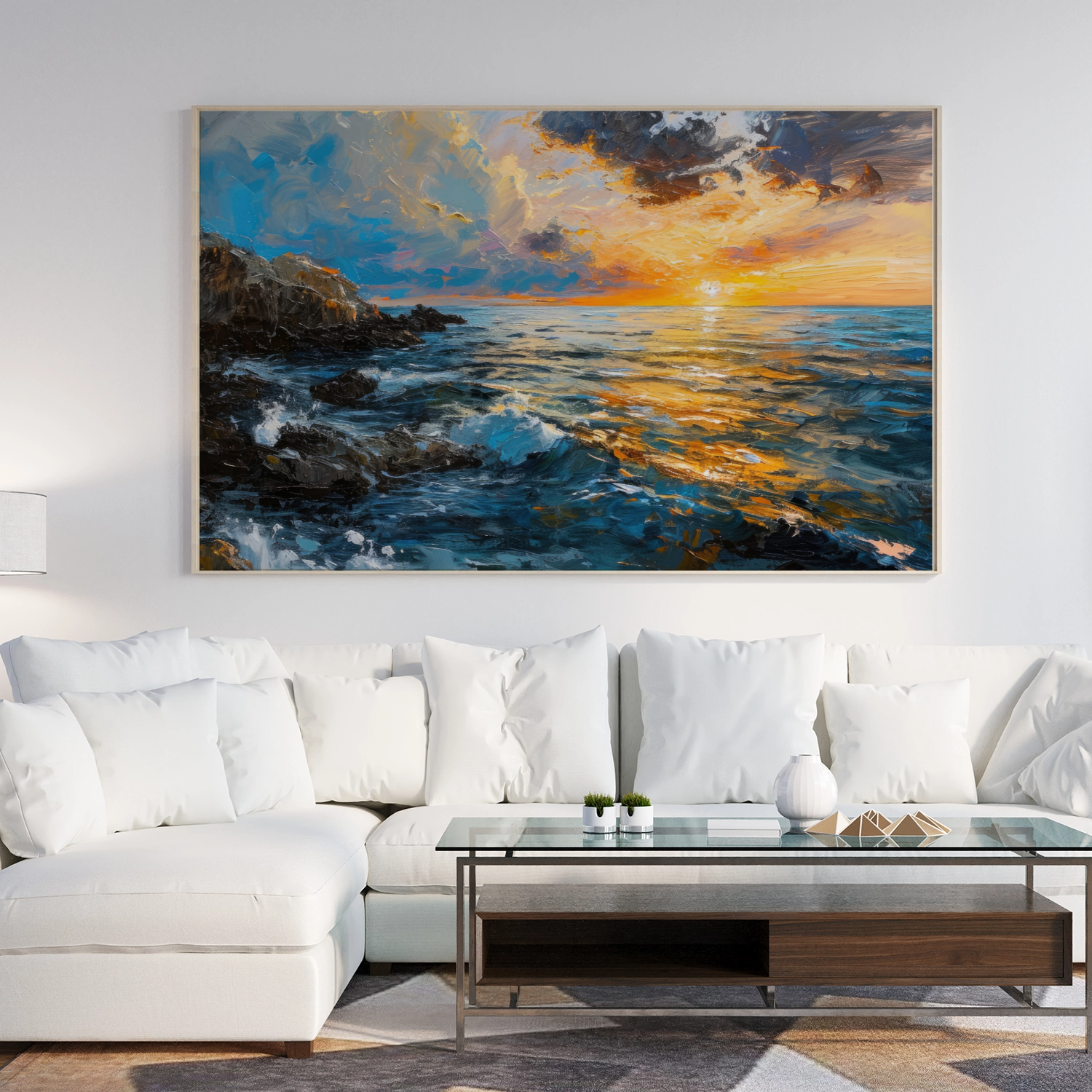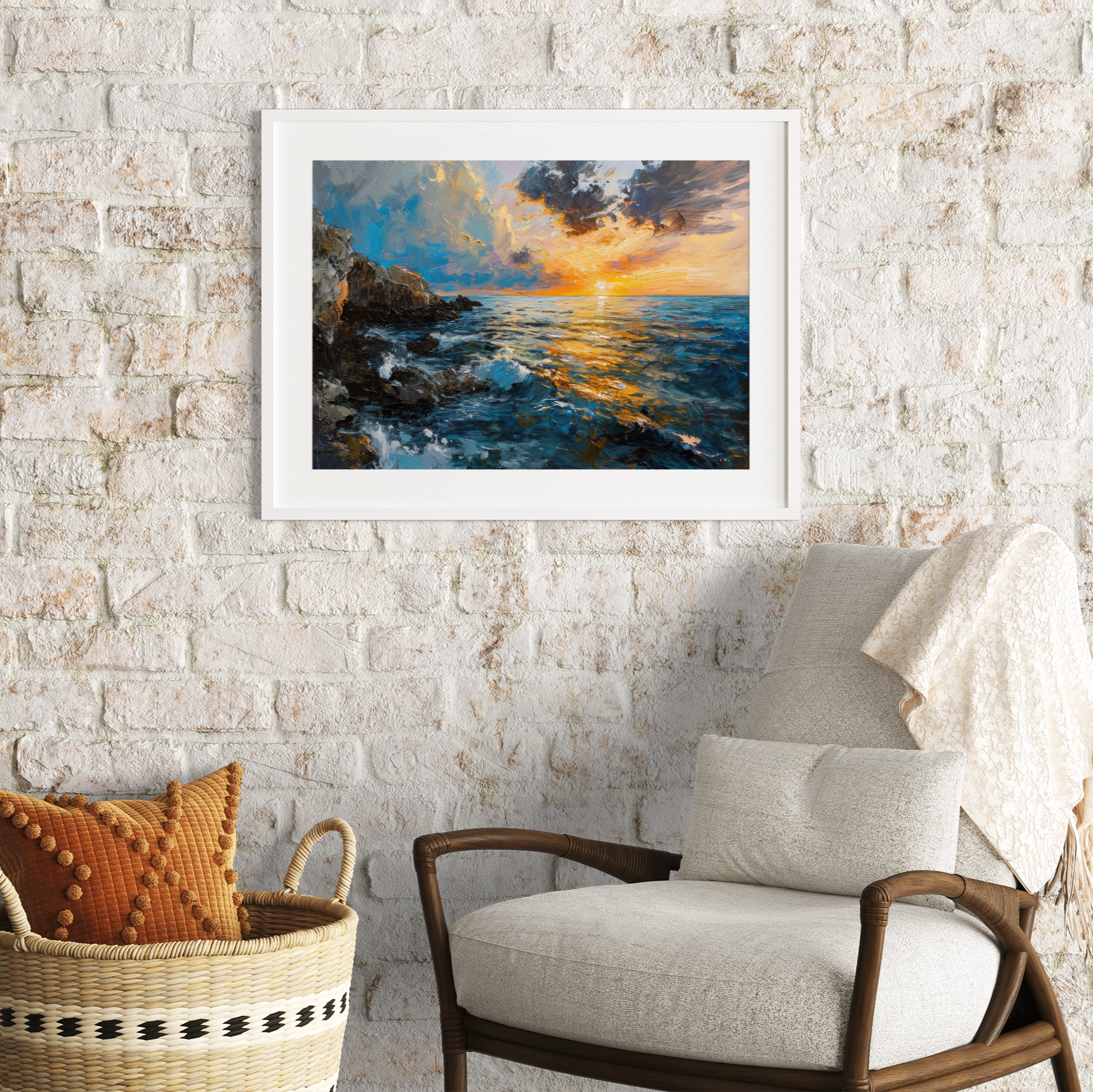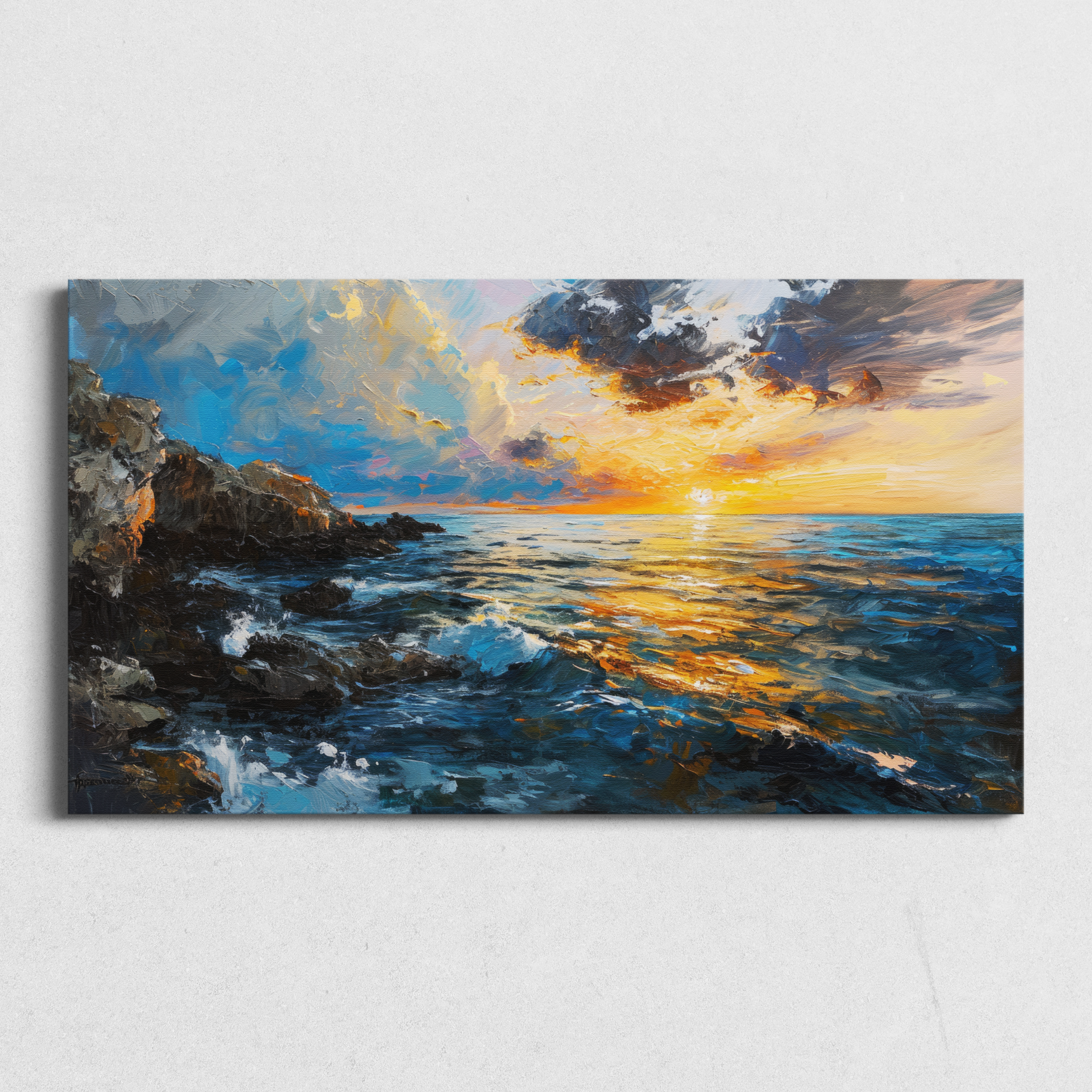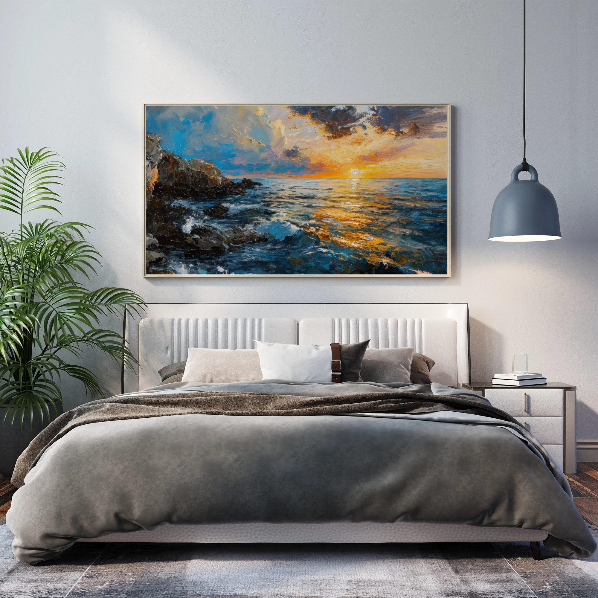 I've been looking for something to hang above my bed forever. I found Horizon Harmony and loved the water and sun contrast, it's perfect!