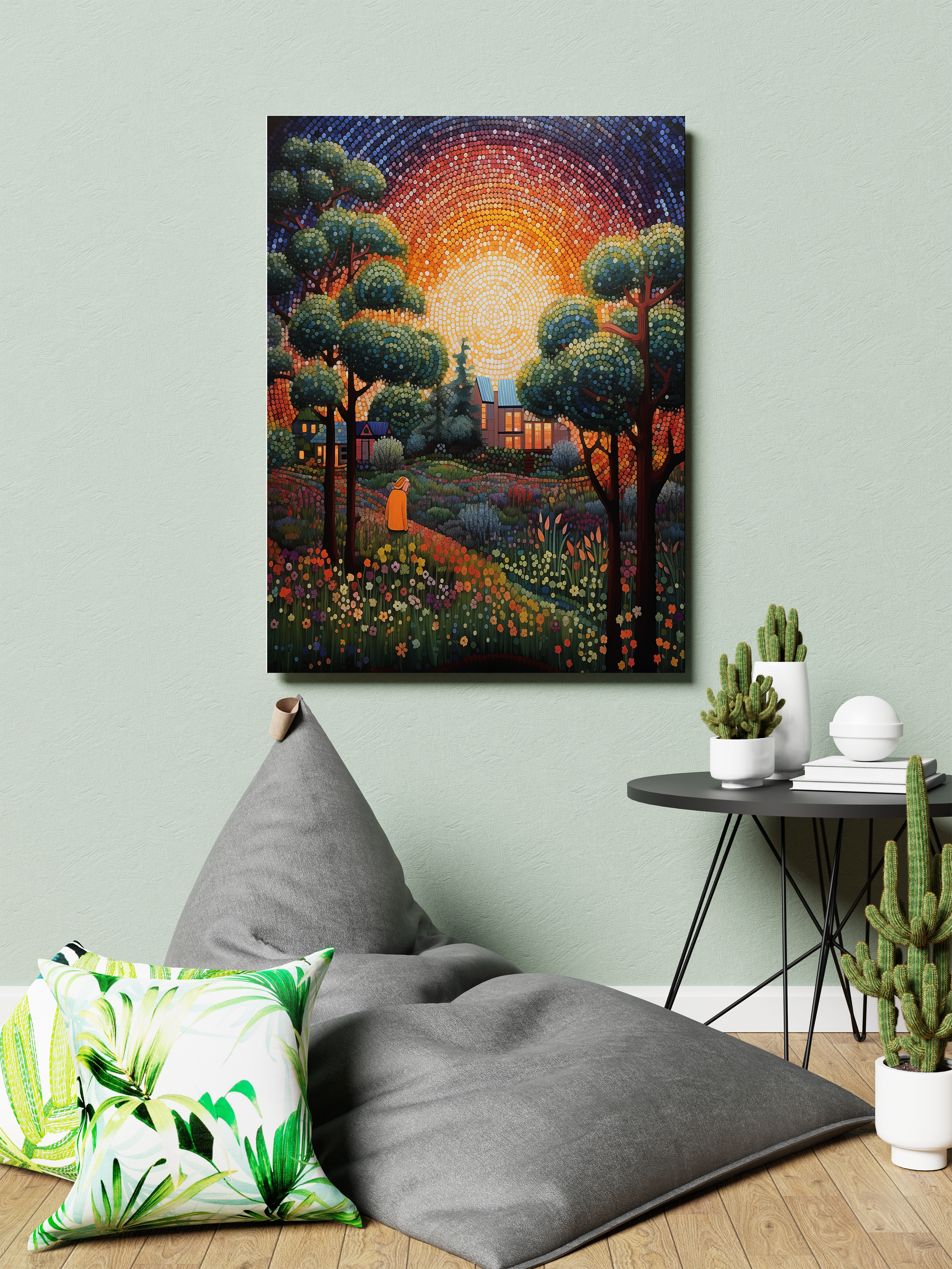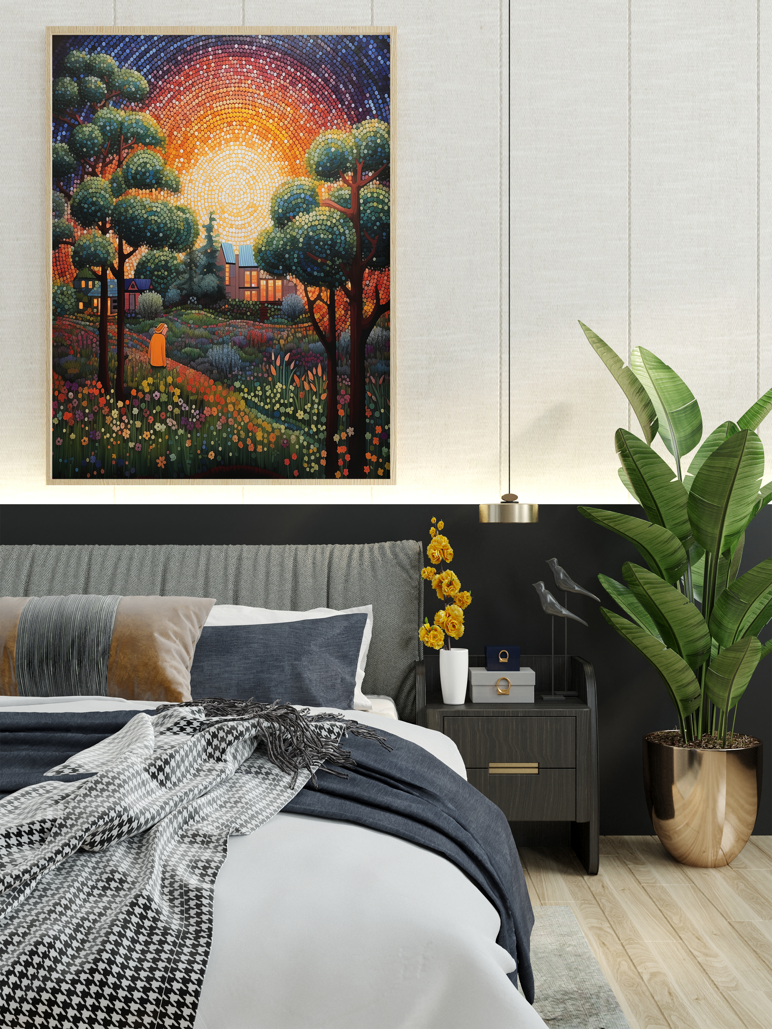 I've been looking for something to hang above my bed forever. I found Horizon Harmony and loved the water and sun contrast, it's perfect!