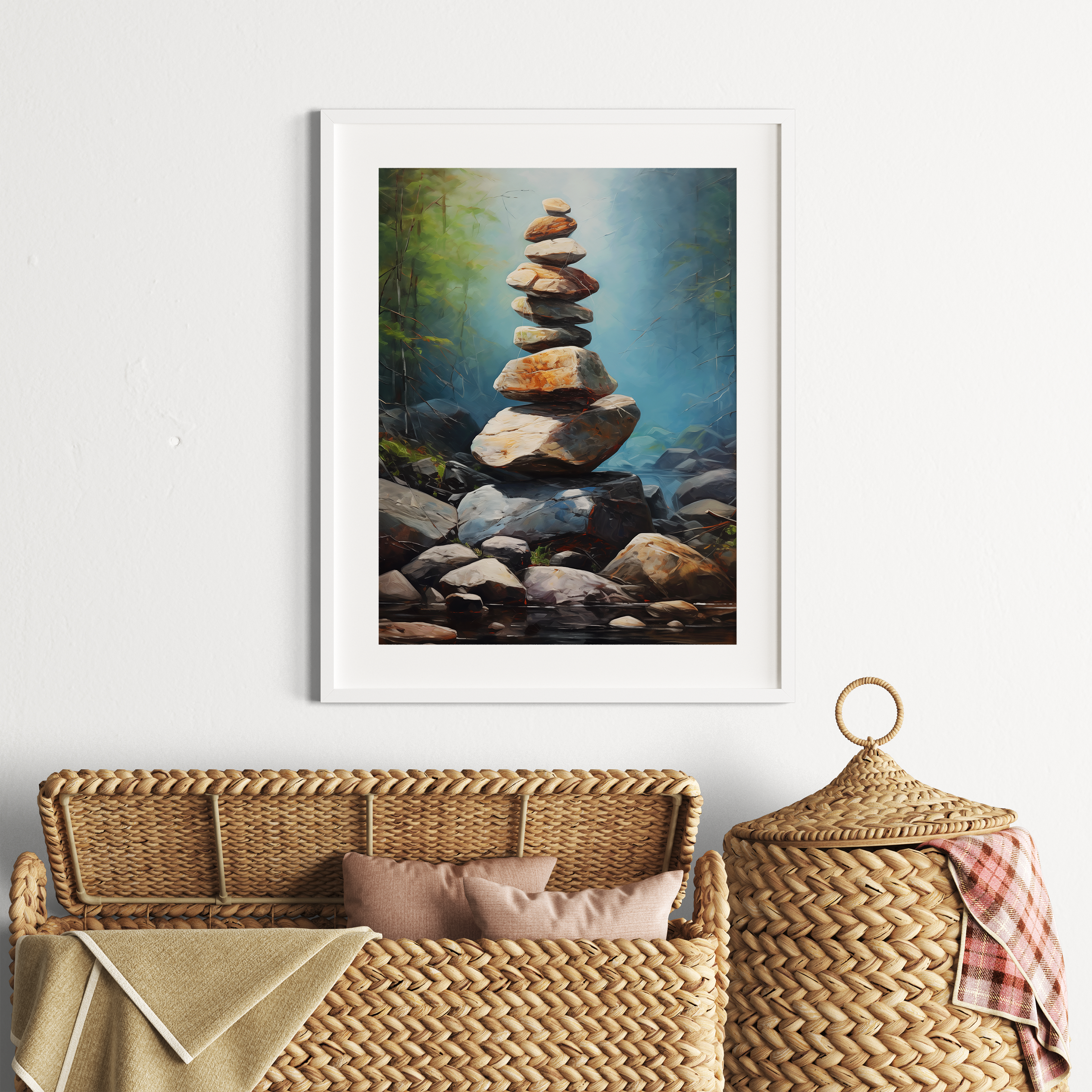 Rubber dots on the bottom of canvas ensure the canvas stays in place when hung