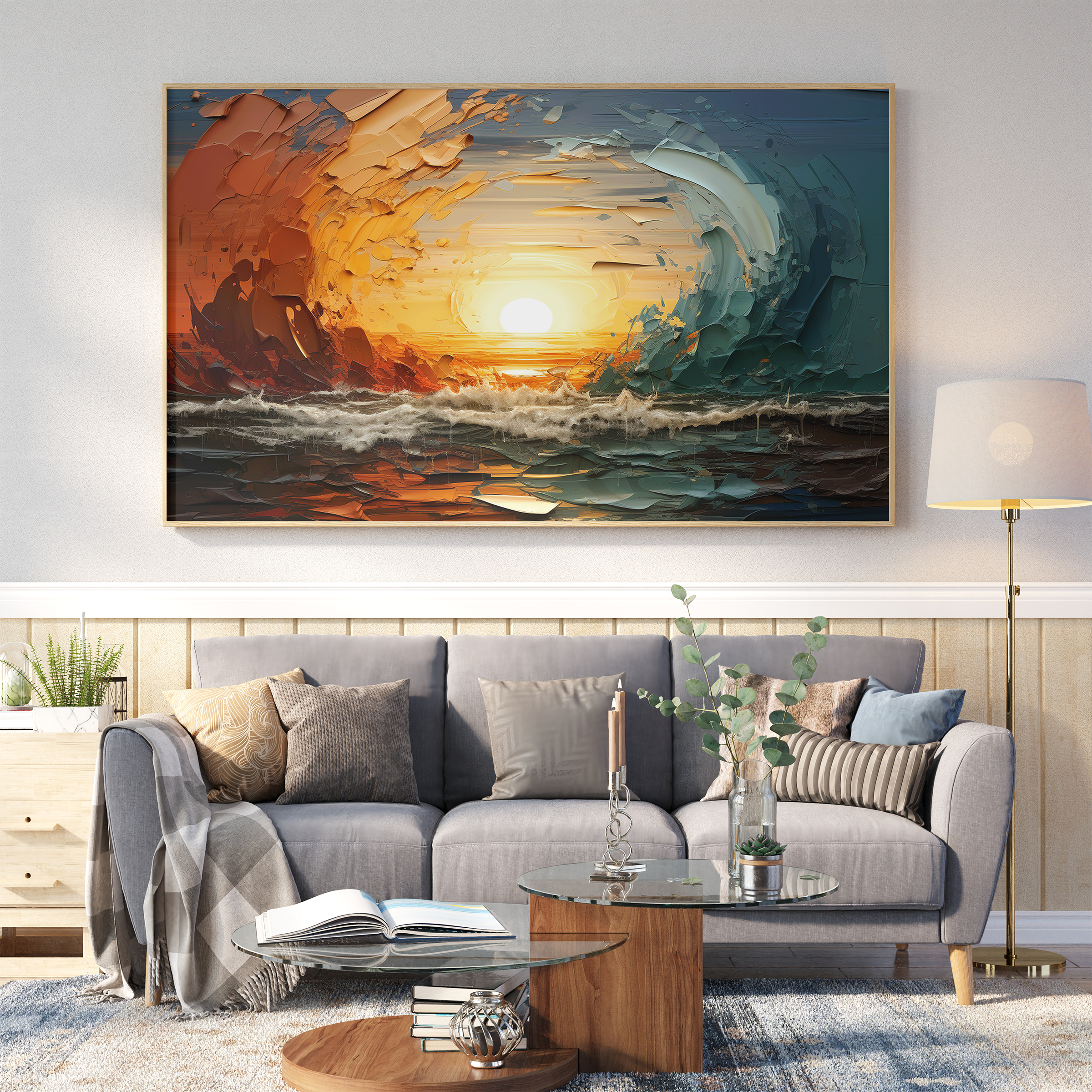 I've been looking for something to hang above my bed forever. I found Horizon Harmony and loved the water and sun contrast, it's perfect!
