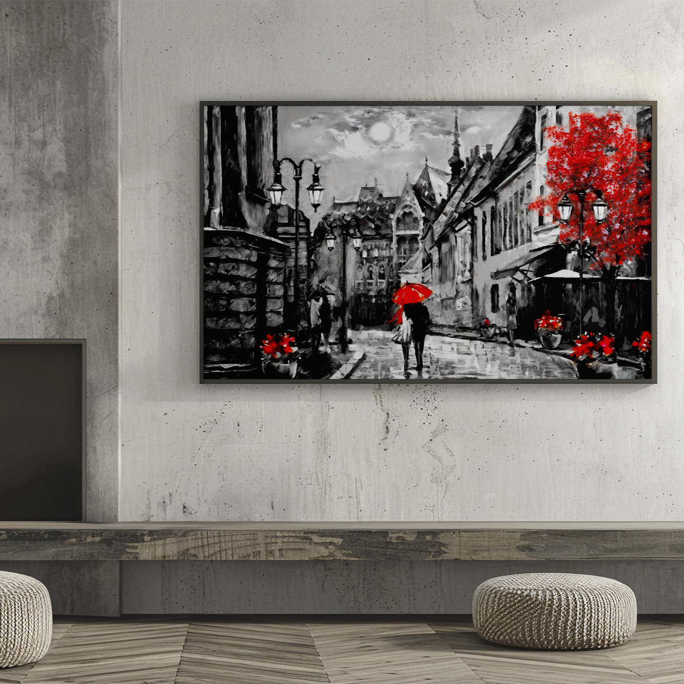 Rubber dots on the bottom of canvas ensure the canvas stays in place when hung