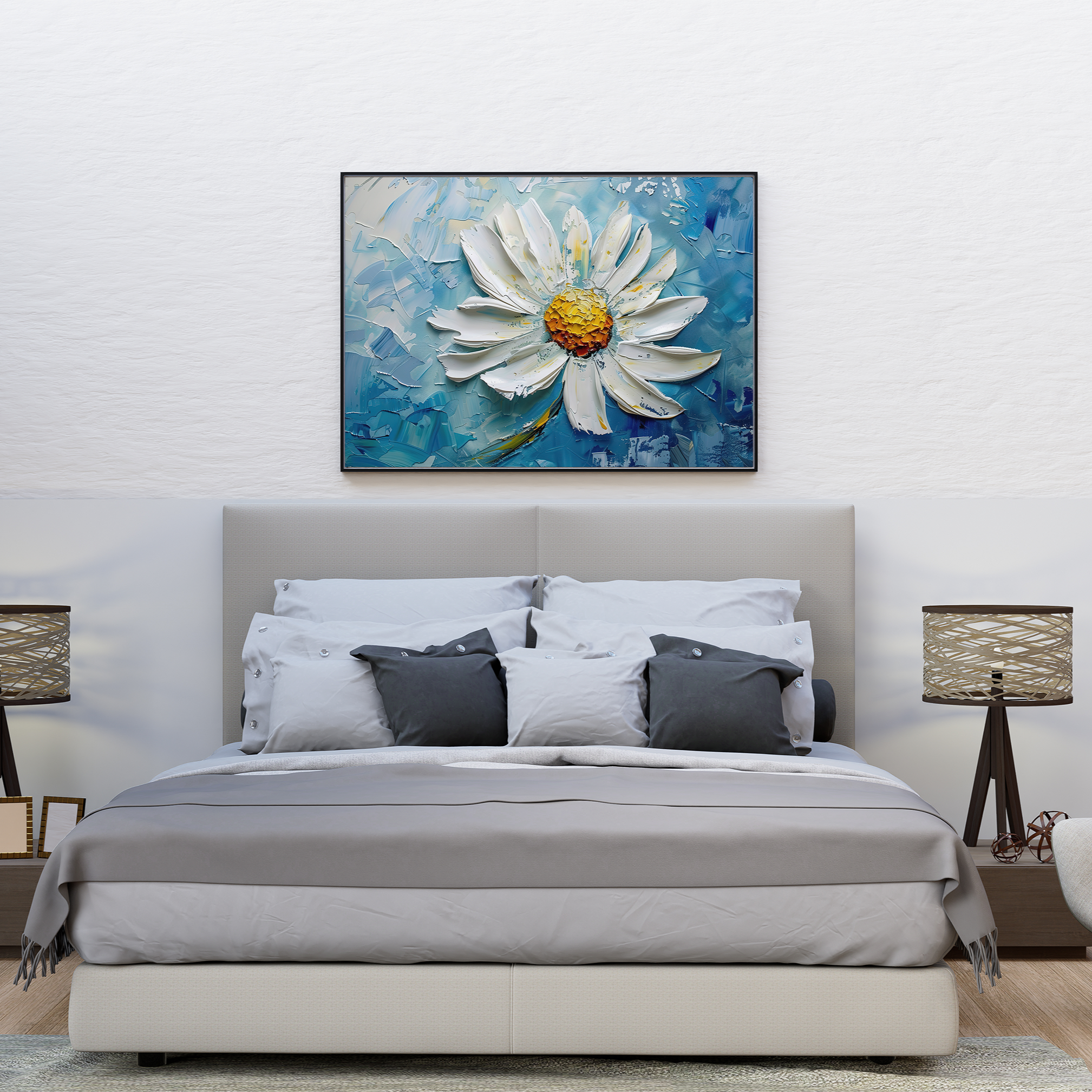 I've been looking for something to hang above my bed forever. I found Horizon Harmony and loved the water and sun contrast, it's perfect!